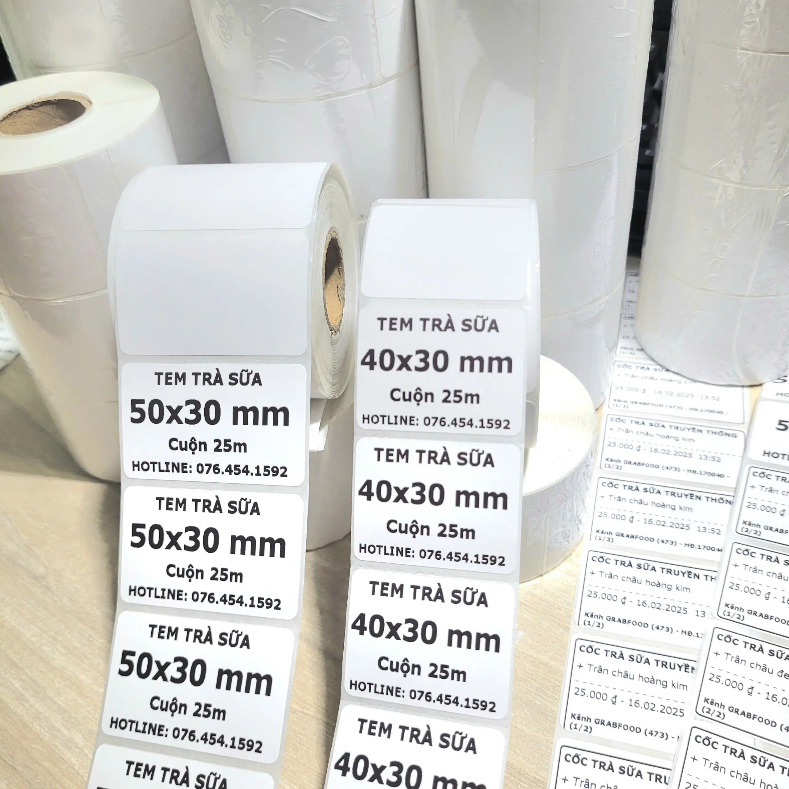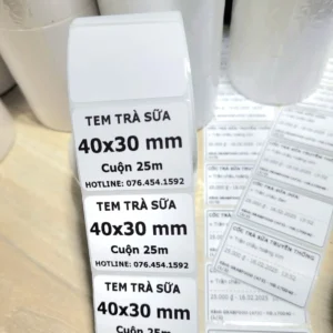 - Dùng cho in tem dán cốc trà sữa, cà phê,… Dùng cho máy in nhiệt, máy POS tính tiền,…