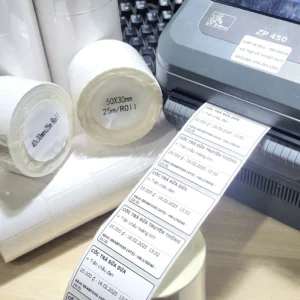 - Chất liệu: Giấy cảm nhiệt trực tiếp
